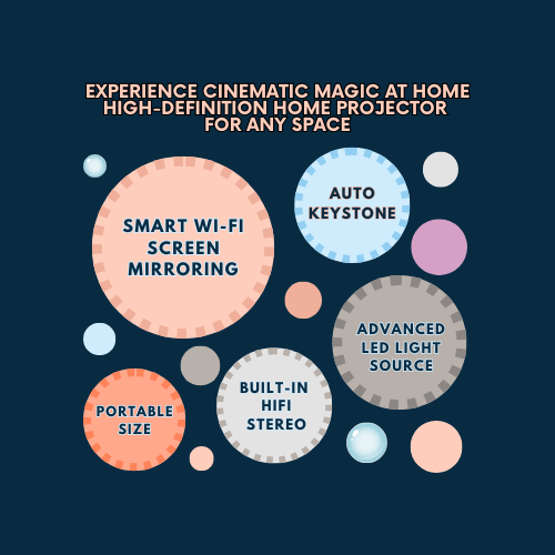 Enjoy smart Wi-Fi screen mirroring, built-in HiFi stereo sound, auto keystone correction, and an advanced LED light source for crisp, vibrant visuals. Its portable size ensures you can create an immersive entertainment experience wherever you go!